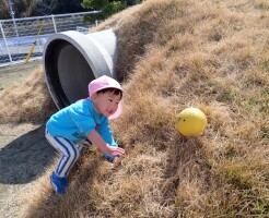 ボールを蹴ったり、お山に登ったり…