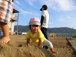 遊具はまだありませんが、砂山によじ登って遊ぶ楽しさを見出した子どもたち!!