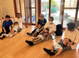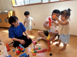 触れ合い遊びでは、子どもたちを“きゅうり”に見立てて